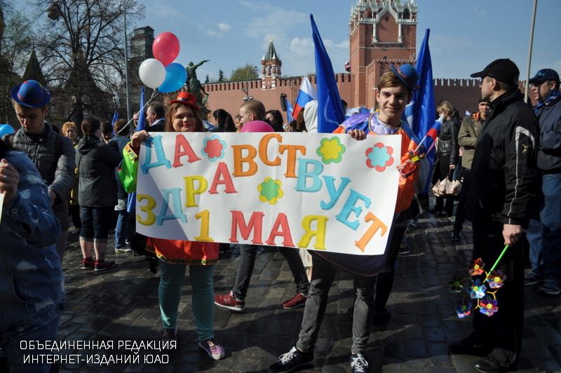 Разноцветные колонны под праздничные лозунги прошествовали по Красной Площади до Государственного исторического музея. Демонстранты пели, плясали, поздравляли друг друга и кричали традиционное «Мир! Труд! Май!».