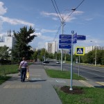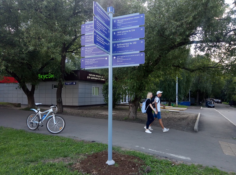 Информационные указатели снабжены табличками с названиями школ, поликлиник, социальных объектов и пр.