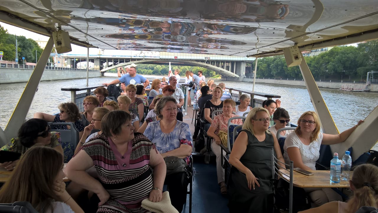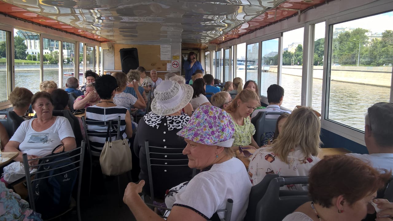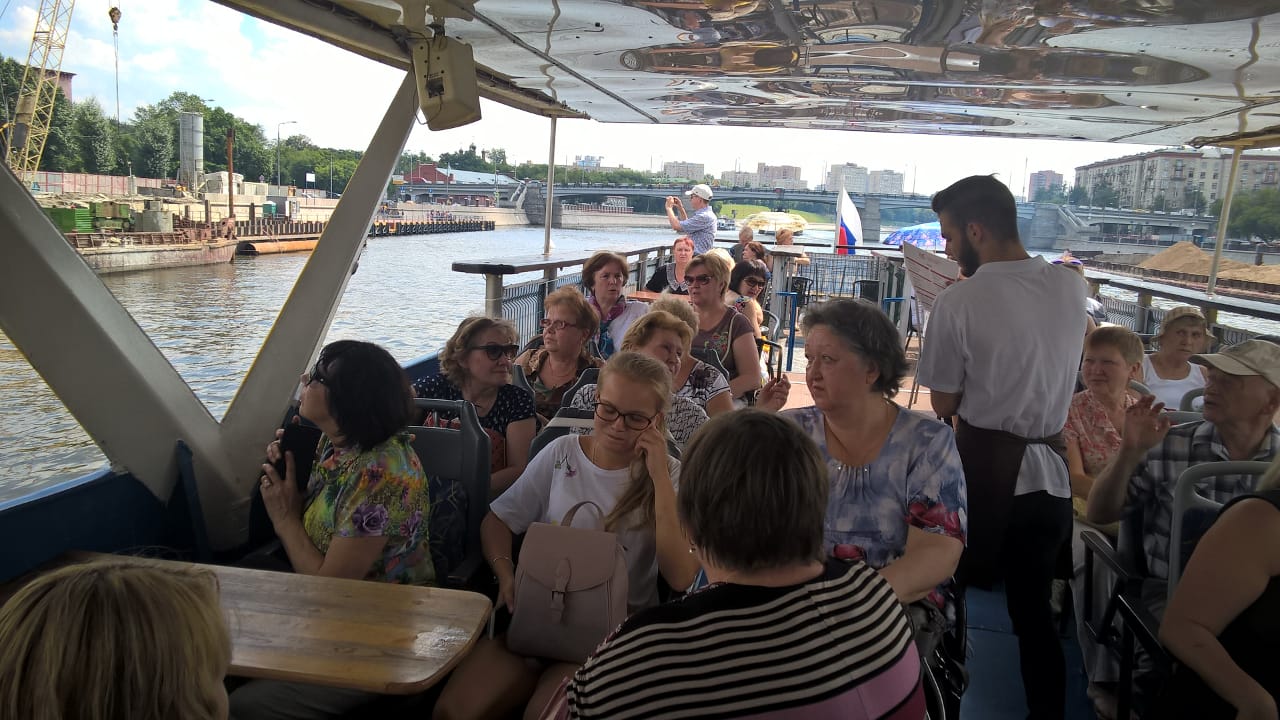 Участники проекта «Московское долголетие» совершили поездку на теплоходе по Москве-реке.