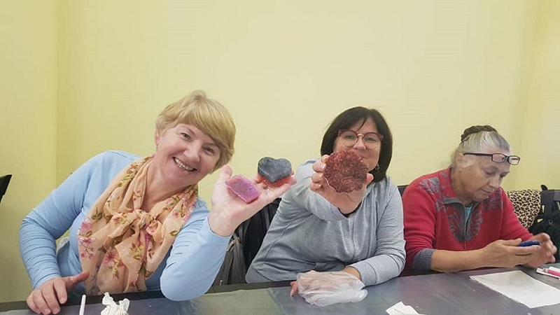 Побывали бабушки и дедушки и на занятиях по мыловарению, где, вложив всю душу и сердце, они готовили подарки близким на Новый год. Розы, снежинки и даже ракеты, каждый выбирал формы для будущих сувениров с особой тщательностью.