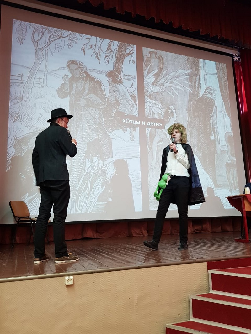 Мероприятие, посвященное юбилею писателя Ивана Тургенева, подготовили учителя русского языка и литературы совместно с десятиклассниками. Школьники выступили с театрализованными номерами по его книгам.
