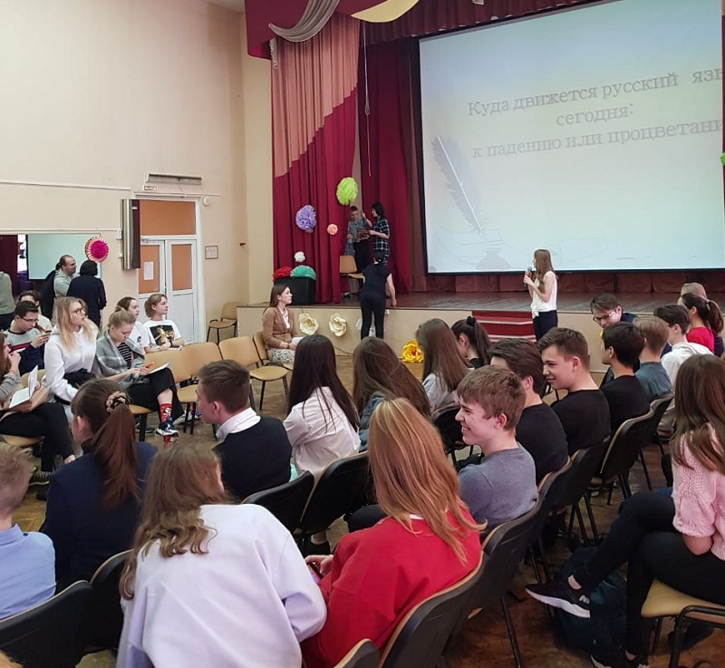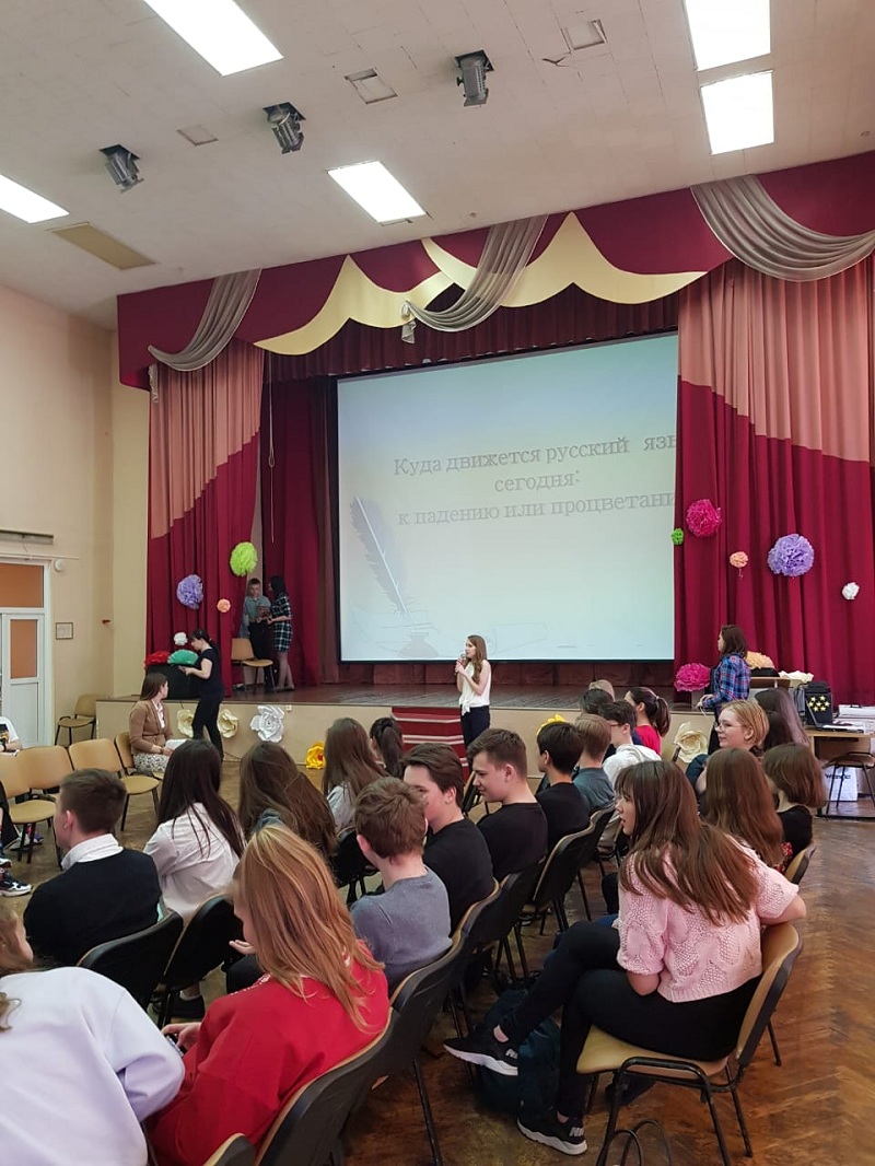 Во время мероприятия школьники также продемонстрировали театрализованную сценку. Как отметила Анна Богданова, в результате дебатов зрители пришли к выводу, что русский язык движется к процветанию.