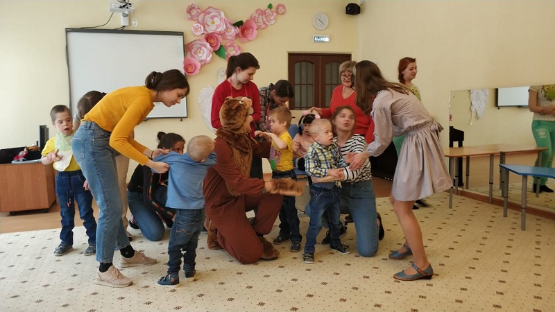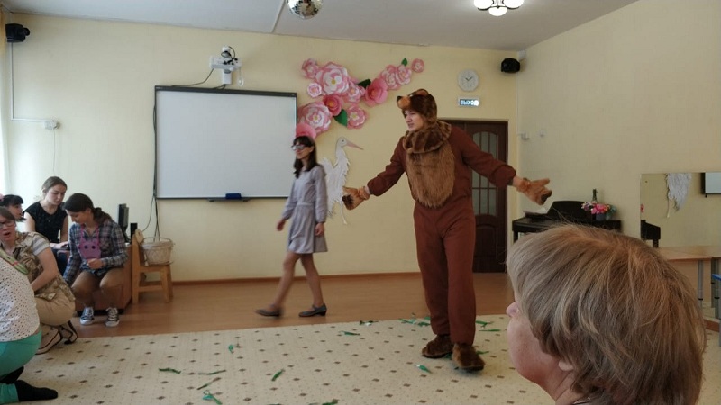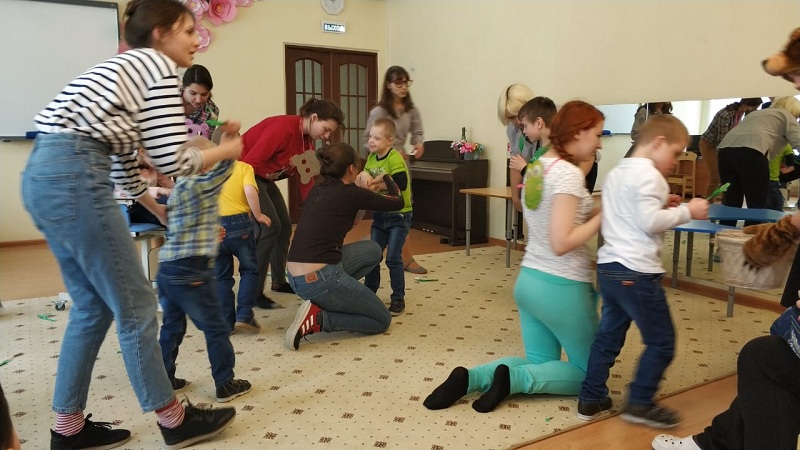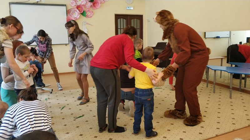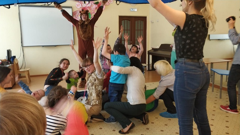 Гостями праздника стали не только потенциальные родители и представители органов опеки, но и семьи, которые уже взяли на попечение ребенка. Перед началом все желающие могли угоститься чаем, бутербродами и сладостями. А когда зрители собрались, в зал привели деток из разных групп, и начался спектакль «Уши, лапы и хвосты», подготовленный волонтерами благотворительного фонда Московского государственного медицинского университета имени Сеченова.