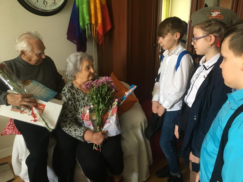 Ребята, в свою очередь, прочитали стихи о войне и поблагодарили Владимира Семеновича за мир без войны, в котором мы живем, и вручили ветеранам цветы и подарки.