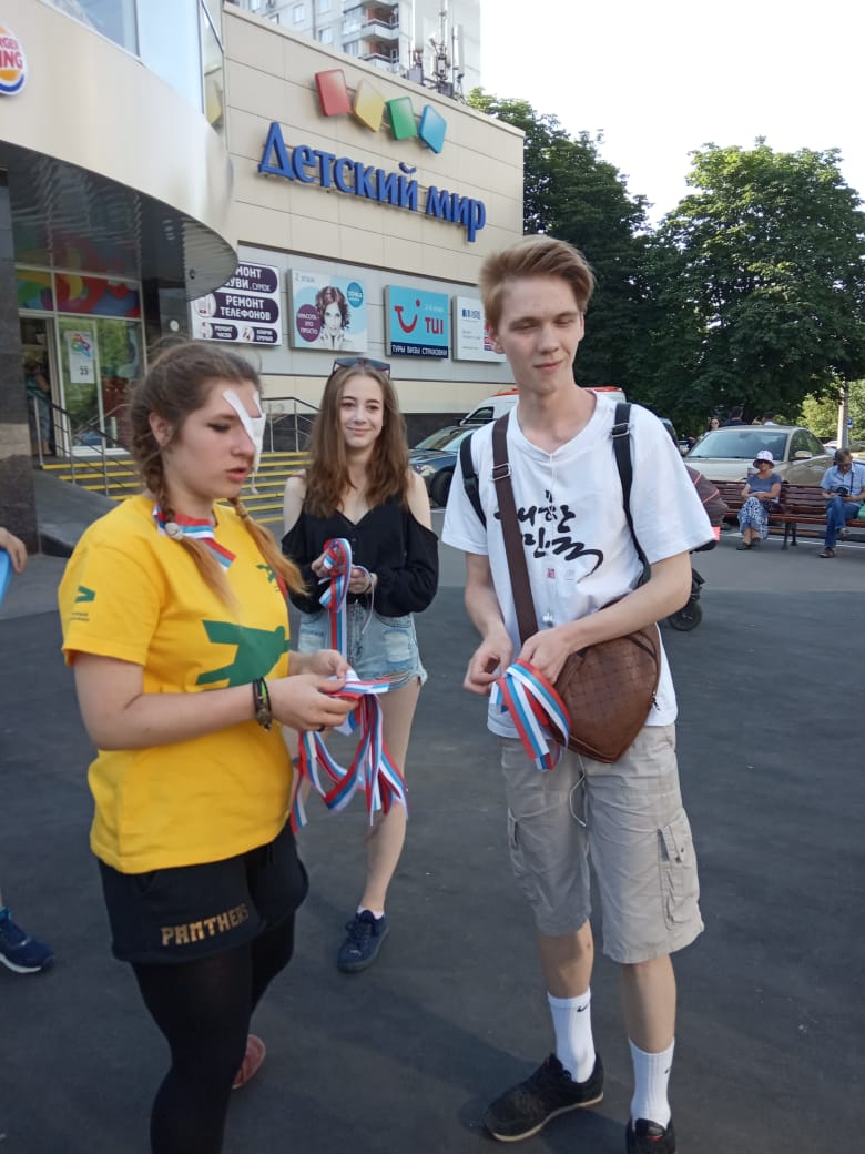 Акцию по раздаче ленточек, выполненных в стиле триколор, провели в Зябликове сотрудники Центра досуга и спорта «Маяк».