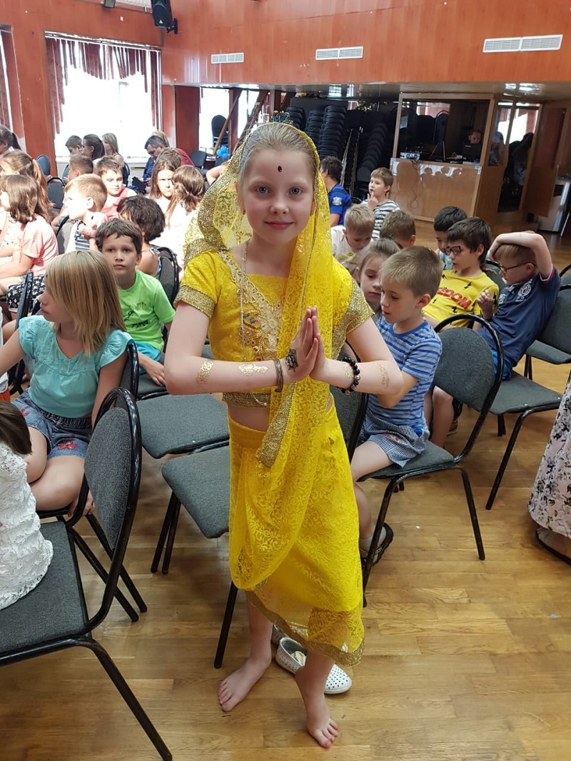 Она также добавила, что на прошлой неделе прошло финальное выступление отрядов, посвященное Индии. Ребята показали отрывок из сказки «Аладдин», элементы йоги, индийский танец и театрализованную сценку.