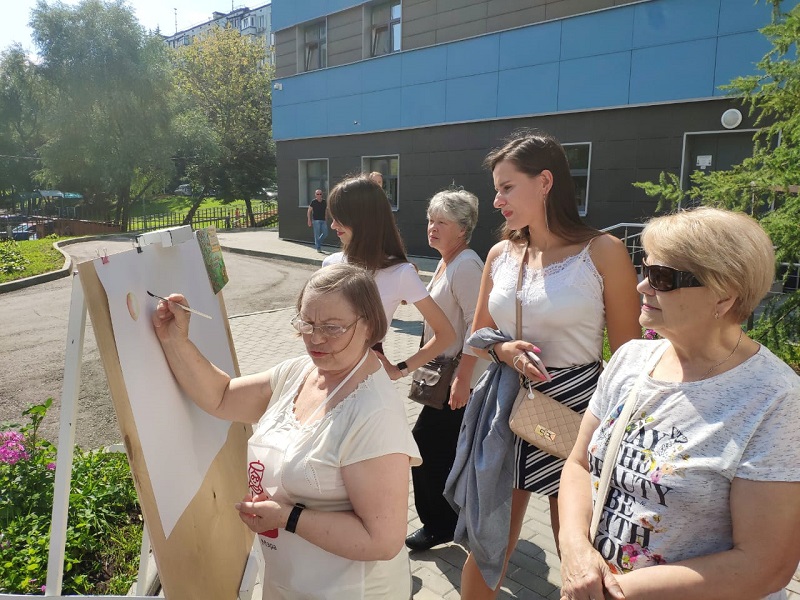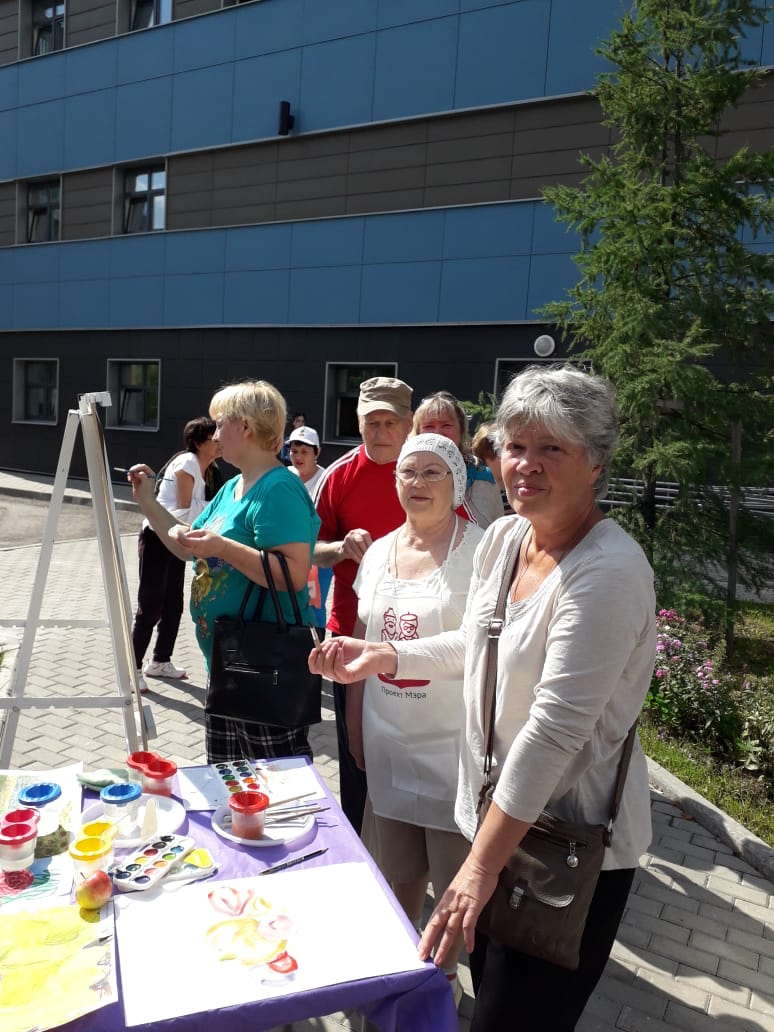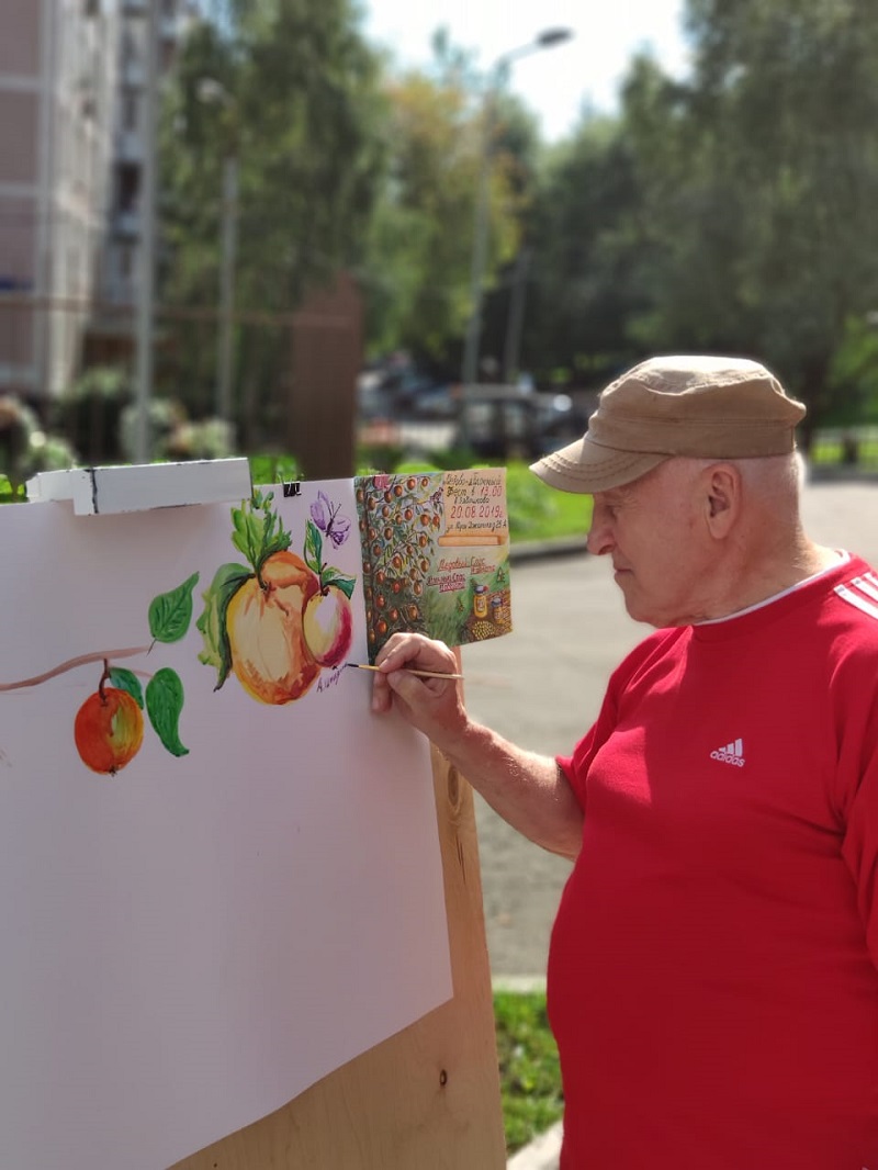 На площадке около центра также были организованы увлекательные развлечения. Например, участники проекта «Московское долголетие» нарисовали «Наливные яблочки», душевно спели под аккомпанемент баяна, водили хороводы. В течение вечера все угощались медом и яблоками.