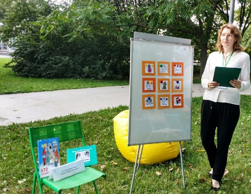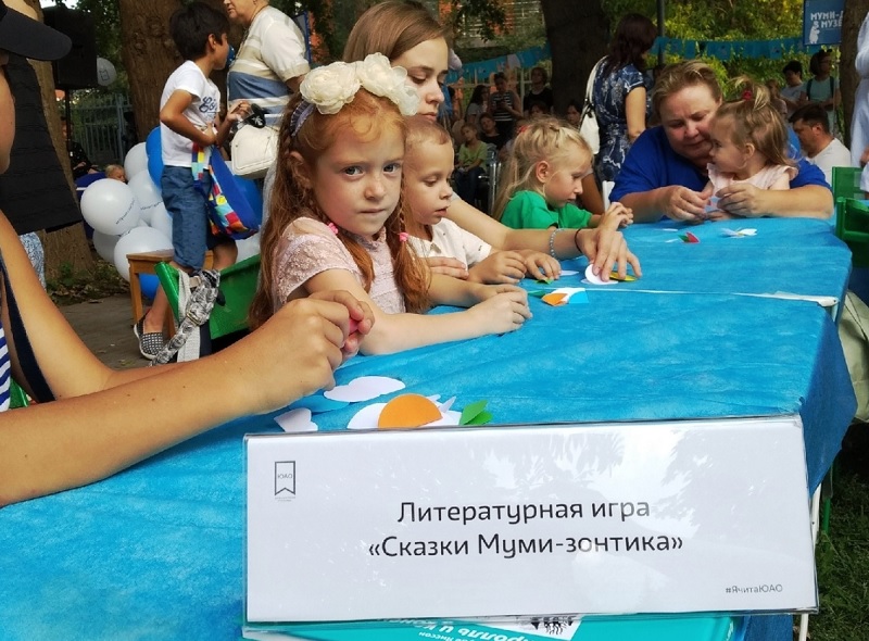 Кроме того, во время «Муми-дня» библиотека № 145 провела литературную игру «Сказки муми-зонтика». Для этого была подготовлена интерактивная доска с карточками, на которых были напечатаны мена персонажей вселенной Туве Янссон. Каждая карточка содержала также различные задания. В начале конкурса дети поделились на команды. За каждый правильный ответ они получали баллы. В результате победила дружба.