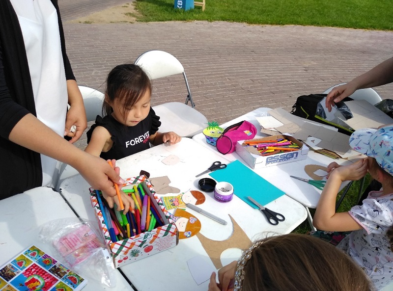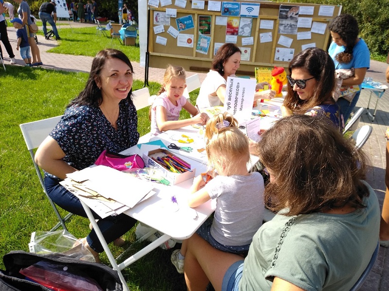 Гости парка посетили тематическую зону «Самоделкин», где развернулись мастерские по созданию парашютов, ракет, планера, многогранников и фигурок героев клуба «Веселых человечков».