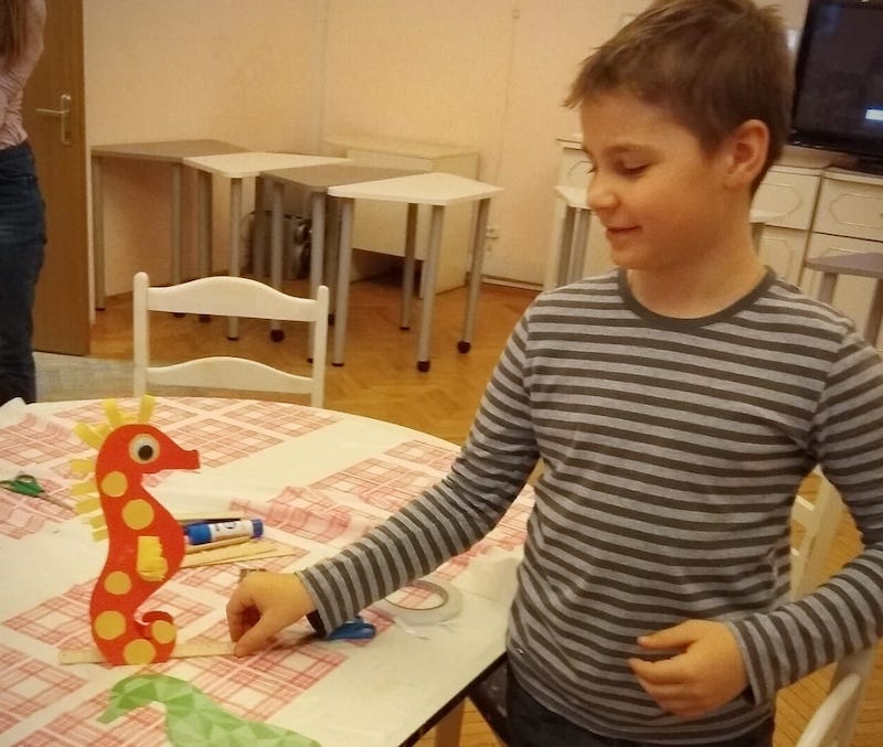 «Урок мы посвятили морским конькам. Вначале наши юные гости узнали много интересных фактов про этих необычных животных. Например, что это единственная рыба, у которой есть шея! Во второй части мероприятия для ребятишек был организовал творческий мастер-класс. Они с помощью цветной бумаги, картона, ножниц и клея своими руками сделали «морских коньков», которых с радостью забрали домой», — поделилась Юлия Владимировна.