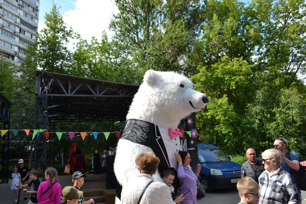 В праздничный день всеми полюбившаяся жителям Зябликова концертная программа пополнила свои ряды. Неизменно на площадке празднования можно было нанести аквагрим на специальной площадке, а также увидеть традиционного и всеми любимого белого мишку.