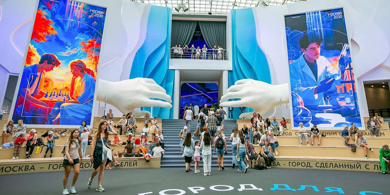 «Красота в движении», «Примерочная супергероя» и ньюфаундленды. Как проходит форум «Москва 2030» в «Лужниках»
